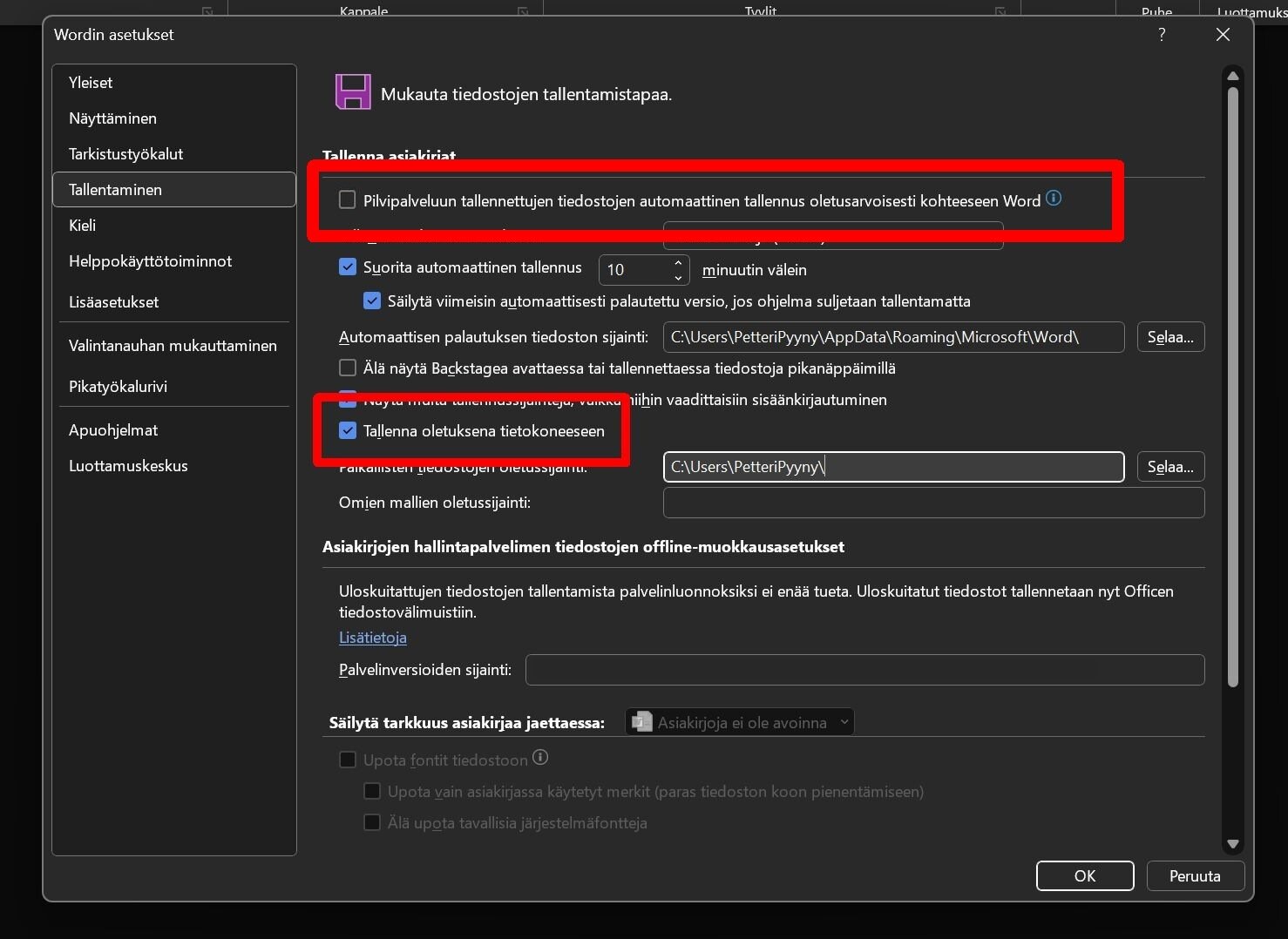 Word alkoi tallettamaan kaikki tiedostot pilveen - näin muutat asetukset takaisin