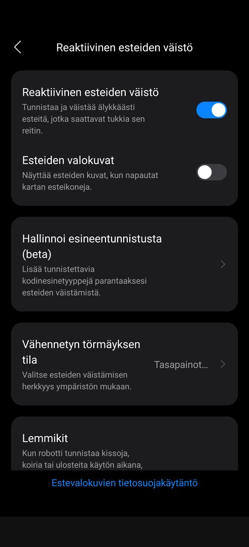 Roborock on pikkuhiljaa saanut parannettua esteiden väistelyn algoritmejaan ja ainakin Saros Z70:n osalta robottiin pystyi jo pitkälti luottamaan, eli lattioilta ei koko pitkän testijakson aikana kerätty talteen mitään johtoja, kenkiä tai muuta sälää, johon perusmalliset roboimurit kompastuisivat.