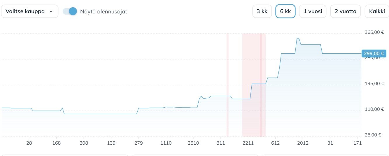 Hinnat pysyivät suhteellisen tasaisina tai jopa laskivat aina lokakuulle 2025 asti, jonka jälkeen alkoi hurja hintojen nousu, joka on vain jatkunut ja jatkunut tuon taitekohdan jälkeen.